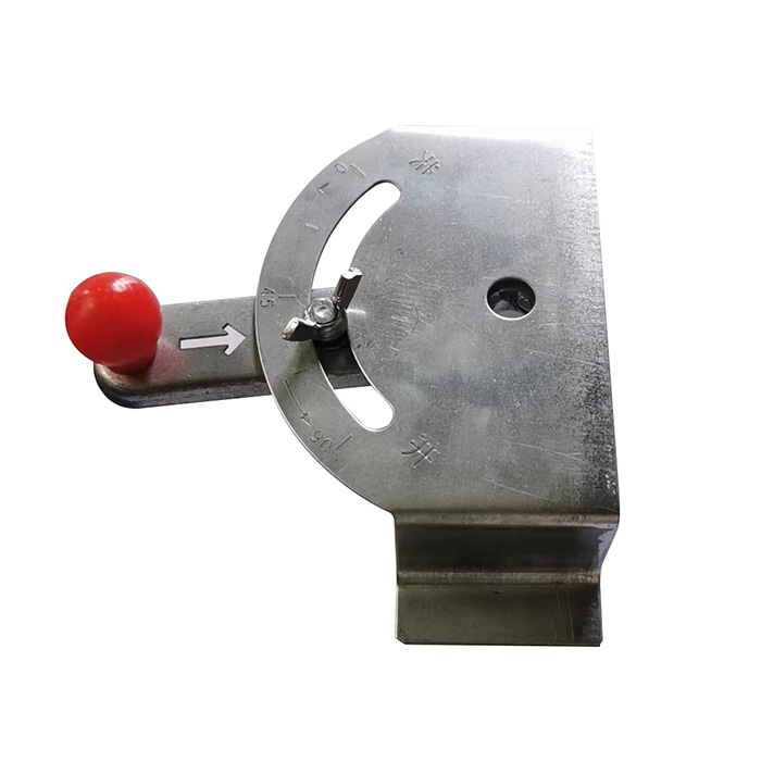 螺旋隧道周邊孔外插角角度固定裝置包括量角板和鉆桿限位器。